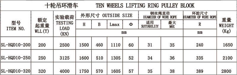 1、吊钩特点:优质合金钢模锻而成,3倍安全系数。 2、滑轮:铸铁滑轮、铸钢滑轮、热轧滑轮。 3、滑轮套芯:复合耐磨铜套、纯铜套、滚珠轴承、滚针轴承。 4、其他吨位可以定做。